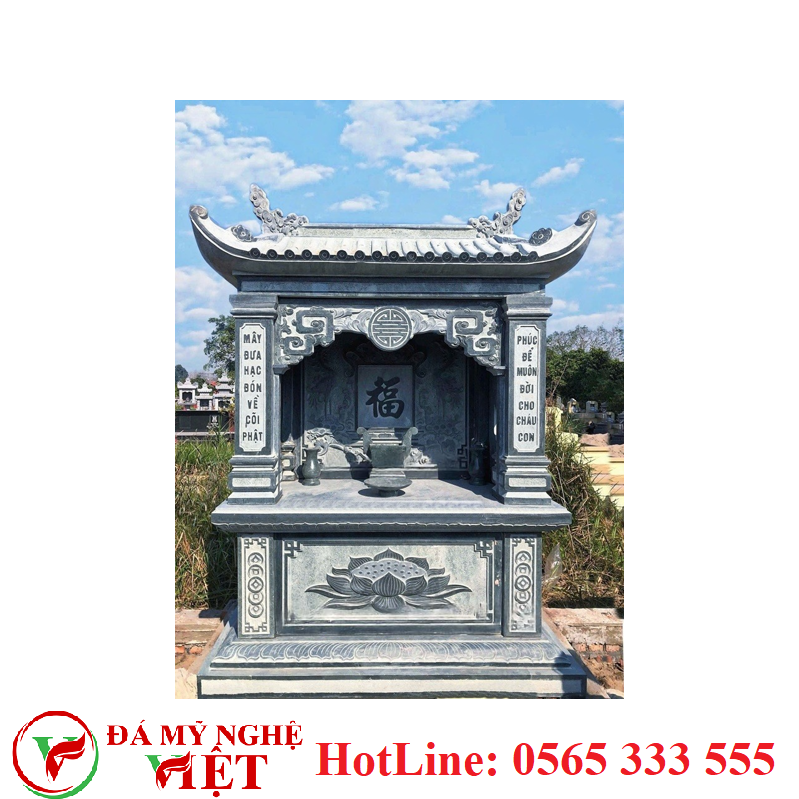 Trên thân và bệ miếu, các nghệ nhân Đá Mỹ Nghệ Việt chạm khắc họa tiết truyền thống như rồng, phượng, hoa sen, mây cuốn. Những hoa văn này không chỉ làm tăng tính thẩm mỹ mà còn thể hiện triết lý phương Đông về sự may mắn, thịnh vượng và thanh tịnh.